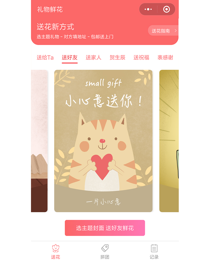 該微信公眾號(hào)是專業(yè)的鮮花網(wǎng)絡(luò)購(gòu)物平臺(tái),應(yīng)用開發(fā)功能模塊有首頁(yè)、拼團(tuán)、記錄等等。